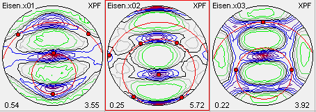 Each pole figure is measured for a sample (n:1) and can contain several BRAGG