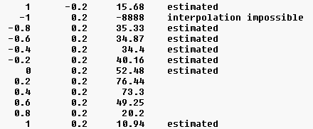 A regular grid can be generated with arbitrary x- and y-steps with respect to the actual default range. The grid may be saved and can be used as a target grid for a grid to grid interpolation (button 5).