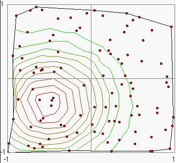 As long as the Example button 6 is pressed random points of a GAUSS function at x = -0.5 and y = -0.33 will be generated.