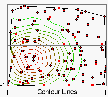 The number of contour lines and the colors of the maximum and minimum line can be            choosen here. For color change click on the corresponding field.