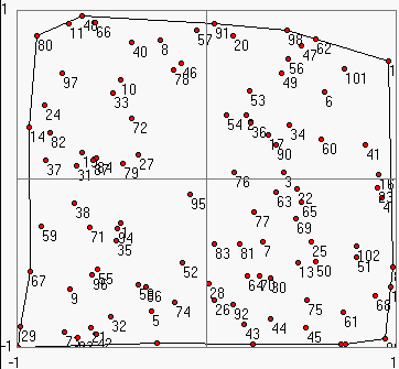 - Generate and save a regular grid of points with X steps= 10,Y steps= 10 (i.e. 11 * 11 points, ) - the XY-range should be unchanged at this,