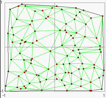 To represent this data as a continuous function the XY-plane may be divided into triangles by using the DELAUNAY triangulation: